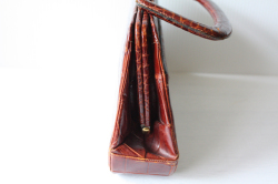 デンマークで見つけたヴィンテージのハンドバックです。こちらはフランス製のバックで、クロコの型押しの明るめのブラウンカラーになります。クラッシックなデザインですので、フォーマルだけでなく、ジーンズやトレンチコートなどのカジュアルファッションにも似合いそうです。ヴィンテージ古着のお好きな方、工夫を凝らしてファッションに取り入れてみませんか?レトロヴィンテージスカーフもお付けしています。