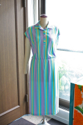 デンマークで見つけたヴィンテージのワンピースです。こちらはニットジャージーの柔らかな素材のマルチパステルカラーのシンプルなワンピースで気兼ねなくさっとデイリーに着用して頂けるかと思います。ヴィンテージ古着のお好きな方、工夫を凝らしてファッションに取り入れてみませんか?ワンピースを着せているトルソーサイズは、B:82.6cm、W:61cm、H:89.3cmです。伸縮性のある生地なので、ウエスト64cmとなっていますがもっと伸びます。