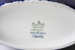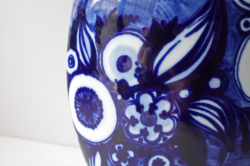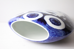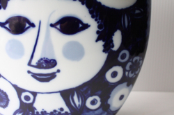 ドイツの一流ブランド、ローゼンタールのスタジオラインにて製造されたデンマークの人気デザイナーBjorn Wiinblad(ヴョルン・ウィンブラッド)の美しい花瓶です。こちらは、ブルーの色一色で描かれた女性の顔がデザインされています。優しい眼差しの女性でほっこりとする表情は大変美しいです。ベースは大ぶりですので、花瓶としてだけでなく、オブジェとして飾って頂くと迫力もあり、インテリアのポイントになりそうです。