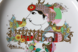 ドイツの一流ブランド、ローゼンタールのスタジオラインにて製造されたデンマークの人気デザイナー、ヴョルン・ウィンブラッドデザインの飾り皿です。アラビアンナイトのモチーフですので、登場人物がエキゾチックで素敵な作品です。