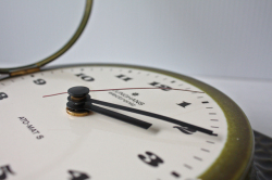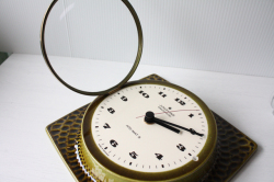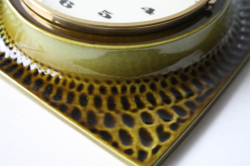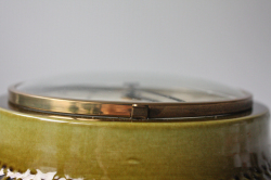 デンマークで見つけたドイツ製のヴィンテージ壁掛け時計です。ドイツの老舗時計メーカーJunghans社の商品でモスグリーンの陶器製のデザインが味わいがあり、大変素敵です。文字盤カバーは開閉可能です。電池を入れて試してみましたが、通常通り動きます。1日で2~3分遅れます。