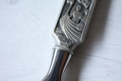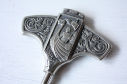 ノルウェー製のピューターのケーキサーバーです。丸みのあるクラシックなフォルムに、持ち手部分にはヴァイキングの英雄オラフや船などヴァイキングの歴史を感じるようなデザインとなっています。ピューターならではの、いぶしたような味わいが素敵な雰囲気です。大人の渋みがあるデザインで、アルコールを楽しんではいかがでしょうか。