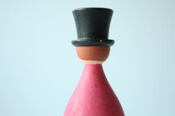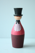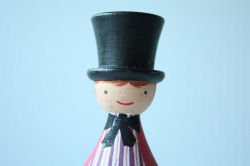 ヴィンテージの木製キャンドルホルダーです。ぷっくりとした体形の愛嬌ある紳士で、おしゃれな棒タイとシルクハットを被っています。帽子の部分がキャンドル立てになっており、キャンドルを立ても素敵です。プリントではなく、すべてハンドペイントで描かれていますので、温かみがあります。お気に入りの場所に飾って下さい!