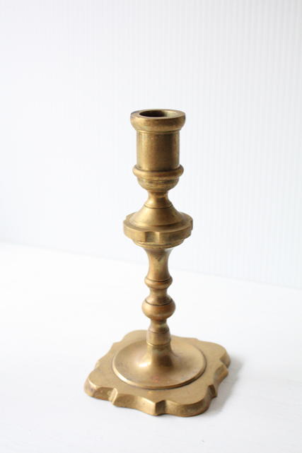 デンマークで見つけた真鍮のキャンドルホルダーです。こちらはすっきりとしたフォルムに脚付きの台で大変クラッシックな印象です。レースなどと一緒に飾っていただくと一層素敵です。オブジェとして飾って頂くと、落ち着いたアンティークのインテリアを演出できそうです。