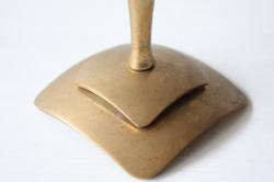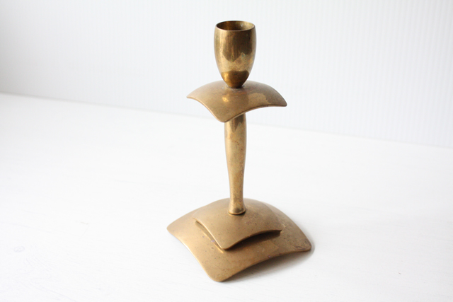 デンマークで見つけた真鍮のキャンドルホルダーです。こちらはユニークなフォルムでスクエアのデザインになっています。こちらはスクエア部分が反り返っており、シャープな印象です。どっしりとした安定感のあるデザインですので、レースなどと一緒に飾っていただくと一層素敵です。オブジェとして飾って頂くと、落ち着いたアンティークのインテリアを演出できそうです。