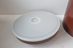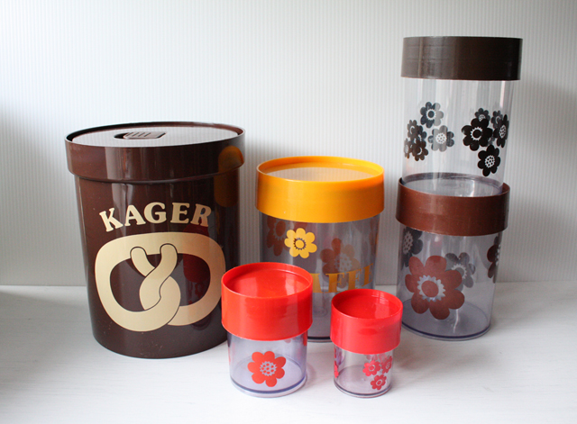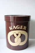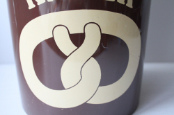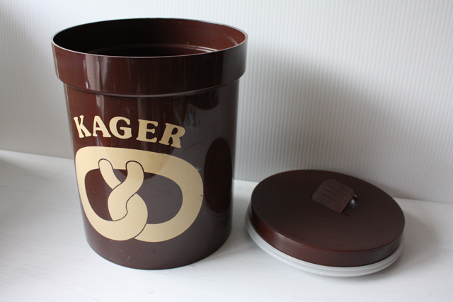 デンマーク、エリックコルドのプラスティックキャニスターです。こちらは大きなサイズで、クッキー入れです。プリッツェルがデザインされています。完全密閉ではありませんが、つくりは密閉できるように作られています。大きなサイズなので砂糖や小麦粉などいろいろなものに使えそうです。
