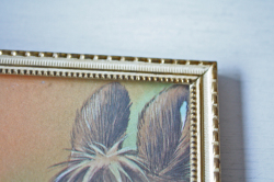 デンマークのアンティークショップで見つけたフォトフレームです。中にはアンティークの刺繍やレース、また写真や古い絵本の切抜きを入れても素敵なインテリアとしてお使いいただけるでしょう。掲載写真には古い絵本の切り抜きが入っています。