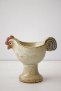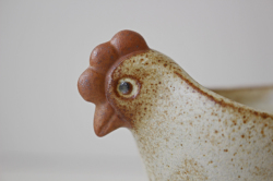 スウェーデン、リサ・ラーソン(Lisa Larson)のメンドリのエッグスタンドです。イースターの際に使用するタマゴ入れとエッグスタンドが作られました。可愛らしいサイズで、親鳥と一緒に飾っても、単品で飾ってもどちらでも楽しめます。釉薬のかかり具合も、味わいがありよい雰囲気です。