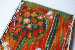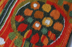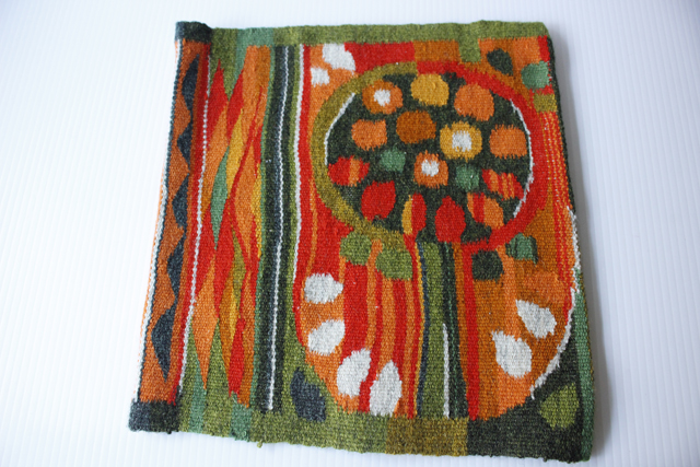 スウェーデン製のフレミッシュ織の壁掛けです。フレミッシュ織は、スウェーデンの中世より伝わるつづれ織りで、椅子の座面やバッグなどに使われてきました。ウールの糸で手間と時間をかけて丁寧に織られた手仕事は、お部屋の温かく彩ってくれるでしょう。暖色系の明るい配色の実のなる木がデザインされています。