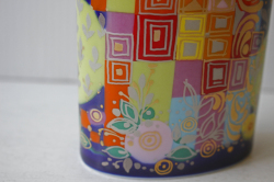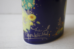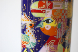 ドイツの一流ブランド、ローゼンタールのスタジオラインにて製造されたデンマークの人気デザイナーBjorn Wiinblad(ヴョルン・ウィンブラッド)の美しい花瓶です。こちらは、カラフルな多彩色を使用したヴィヨルンらしい作品でエキゾチックな衣装に両手に鳥をのせたデザインになっています。背景がネイビーでカラフルな色合いが映えますね。