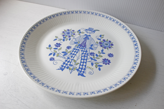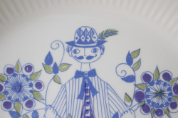 ノルウェー、フィッギオの中でも可愛らしいレトロモダンなモチーフが多く、今でも人気のあるチューリデザインのディナープレートです。こちらはLottaシリーズで、ブルーを中心とした寒色系のお花や可愛い女の子がデザインされています。