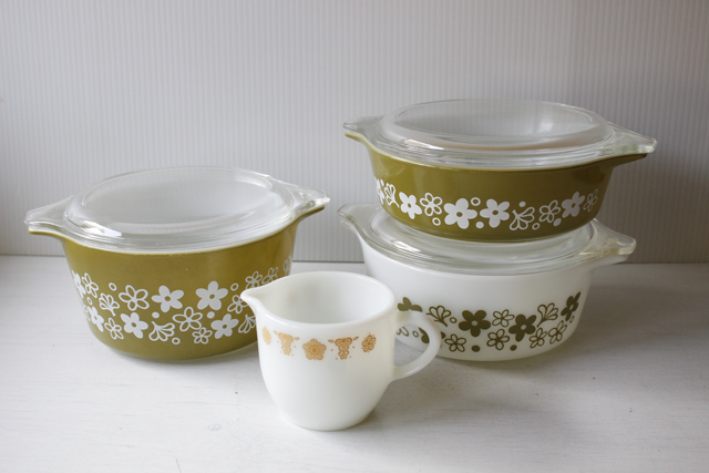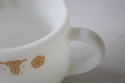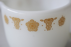 アメリカ製の耐熱ガラスのクリーマーです。ミルクガラスにお花と蝶々がデザインされた可愛らしい雰囲気です。ミルクだけでなく、ドレッシングやソースなどを入れてもよいでしょう。
