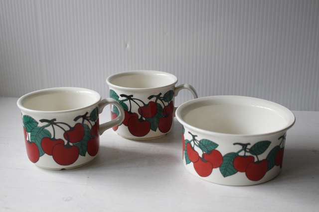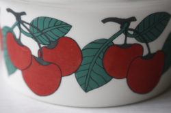 フィンランドのArabia(アラビア)社、Kirsikka(キルッシカ)シリーズの丸ボウルです。こちらのシリーズは、大きなサクランボがカップ全面に描かれており、大変可愛らしいデザインです。シュガーボウルにしたり、お菓子やチョコを入れたり多様にお使いいただけます、なかなか見つからないシリーズですので、お探しの方はどうぞ!