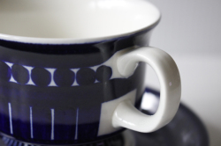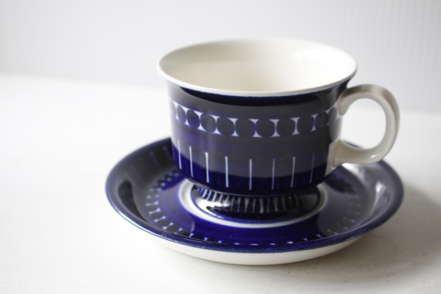 フィンランド、ARABIA/Ulla Procope(ウラ・プロコッペ)のデザインした、Valenciaシリーズのコーヒーカップ&ソーサーです。1960年代から2003年までとロングセラーで生産されたシリーズで、大胆なハンドペイントが魅力です。美しいコバルトブルーのシリーズで、北欧らしい温かみのあるデザインが現地でも日本でも人気の作品です。アラビアの手描き部門は廃止されており、今となっては希少なシリーズです。