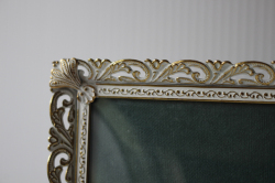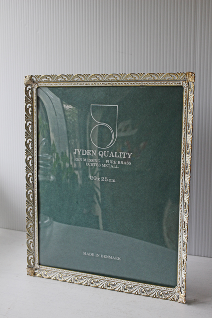 デンマーク、Jyden社のフォトフレームです。縁周りはゴールドとホワイトのコンビカラーでの繊細なボタニカルデザインになっており上品です。中にはアンティークの刺繍やレース、また写真や古い絵本の切抜きを入れても素敵なインテリアとしてお使いいただけるでしょう。