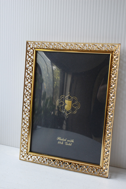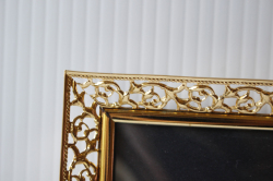 デンマーク、Jyden社のフォトフレームです。縁周りはゴールドの繊細なボタニカルデザインになっており上品です。中にはアンティークの刺繍やレース、また写真や古い絵本の切抜きを入れても素敵なインテリアとしてお使いいただけるでしょう。
