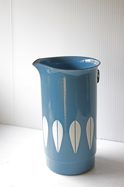 ノルウェー、キャサリンホルムの大人気ロータスシリーズのホーローピッチャーです。持ち手が紛失していますので、花瓶としてお花を飾ったり、キッチンスツールスタンドとしてお使いいただいてもよいでしょう。ホーロー製品はコンディションのよいものを探すのが困難なアイテムですので入荷が少ないです。