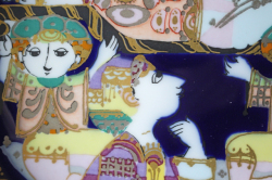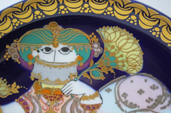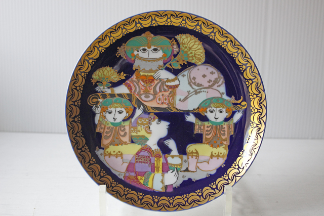 デンマークの人気デザイナーBjorn Wiinblad(ヴョルン・ウィンブラッド)の美しい絵皿です。千夜一夜物語のアラジンのお話のモチーフでカラフルな色彩と金彩銀彩が施された華やかなプレートです。壁掛けフックがついています。