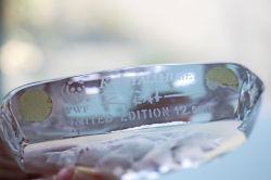 スウェーデンのヴィンテージガラスのオブジェです。こちらは、WWF支援のために限定数で製作されたものです。氷の中にリスと木の実がデザインされた可愛らしいものです。WWFは約100カ国で活動している環境保全団体で「World Wide Fund for Nature(世界自然保護基金)」の略です。地球上の生物多様性を守り、人の暮らしが自然環境や野生生物に与える負荷を小さくすることによって、人と自然が調和して生きられる未来を目指しています。