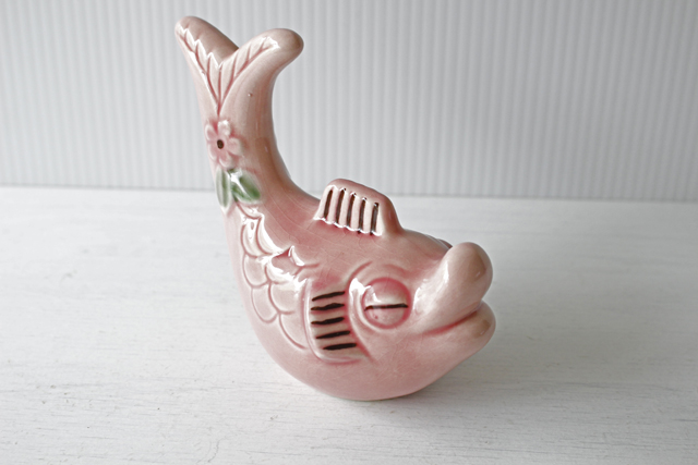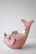 スウェーデン/Rosa Ljungデザインのオブジェです。こちらはサカナがモチーフになっていてしっぽにRosa Ljungの得意なお花がデザインされており可愛らしい雰囲気です。お魚さんは目を閉じていますが、分厚い唇と表情が可愛らしいですね。ピンク色のオブジェは愛らしく、ほっこりとするデザインでお勧めです。