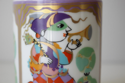デンマークの人気デザイナーBjorn Wiinblad(ヴョルン・ウィンブラッド)がドイツ・ローゼンタール社のためにデザインしたものです。程よい大きさのキャンドルホルダーで、道化やエキゾチックな女性が描かれています。カラフルな色使いはヴィヨルンの感性ならではのもので、オブジェとしても楽しんでいただけます。
