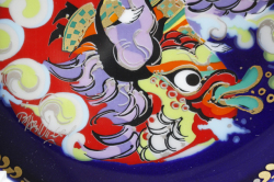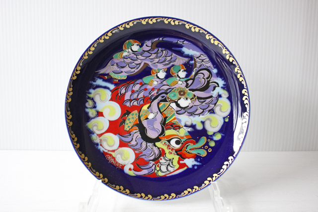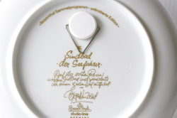 デンマークの人気デザイナーBjorn Wiinblad(ヴョルン・ウィンブラッド)の美しい絵皿です。千夜一夜物語のアラジンのお話のモチーフでカラフルな色彩と金彩銀彩が施された華やかなプレートです。
