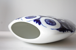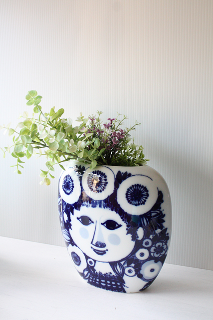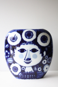 ドイツの一流ブランド、ローゼンタールのスタジオラインにて製造されたデンマークの人気デザイナーBjorn Wiinblad(ヴョルン・ウィンブラッド)の美しい花瓶です。こちらは、ブルーの色一色で描かれた女性の顔がデザインされています。優しい眼差しの女性でほっこりとする表情は大変美しいです。ベースは大ぶりですので、花瓶としてだけでなく、オブジェとして飾って頂くと迫力もあり、インテリアのポイントになりそうです。