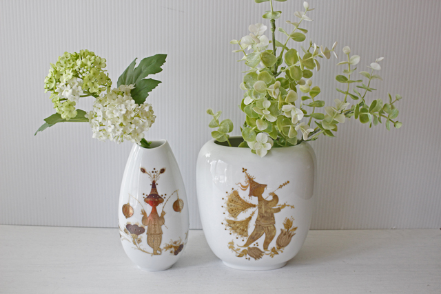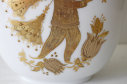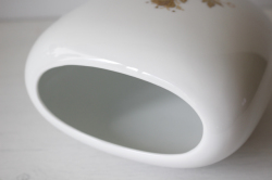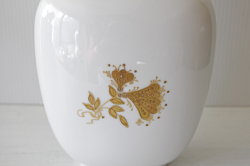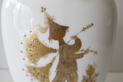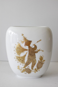 デンマークの人気デザイナーBjorn Wiinblad(ヴョルン・ウィンブラッド)がドイツ・ローゼンタール社のためにデザインしたフラワーベースです。柔らかな曲線のオーバル型の優雅なフォルムに、ウィンブラッドならではの繊細で曲芸師が金彩によって表現されています。ピュアな白磁にツヤを抑えたマットな金彩が施されることによって、気品ある仕上がりとなっています。大きさもほどよく、飾っていただきやすいと思います。