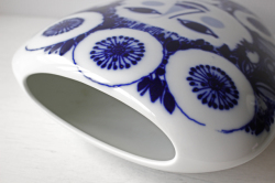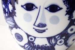 ドイツの一流ブランド、ローゼンタールのスタジオラインにて製造されたデンマークの人気デザイナーBjorn Wiinblad(ヴョルン・ウィンブラッド)の美しい花瓶です。こちらは、ブルーの色一色で描かれた女性の顔がデザインされています。優しい眼差しの女性でほっこりとする表情は大変美しいです。ベースは大ぶりですので、花瓶としてだけでなく、オブジェとして飾って頂くと迫力もあり、インテリアのポイントになりそうです。