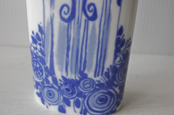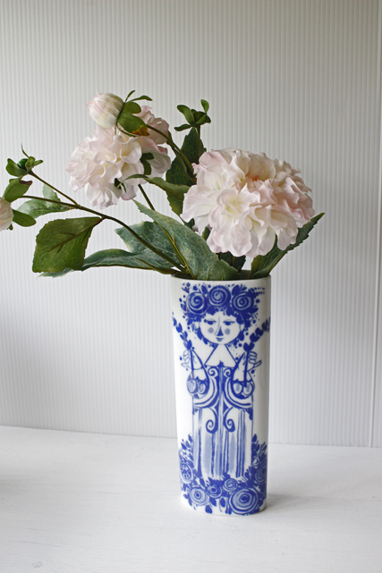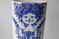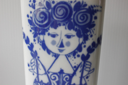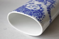 ドイツの一流ブランド、ローゼンタールのスタジオラインにて製造されたデンマークの人気デザイナーBjorn Wiinblad(ヴョルン・ウィンブラッド)の美しい花瓶です。こちらは、ブルーの色一色で描かれた女性が2本の植物を持って佇んでいます。両面共に女性の表情が違い、気分によって使い分けられます。小振りなサイズで、置く場所を選ばず飾ることができます。