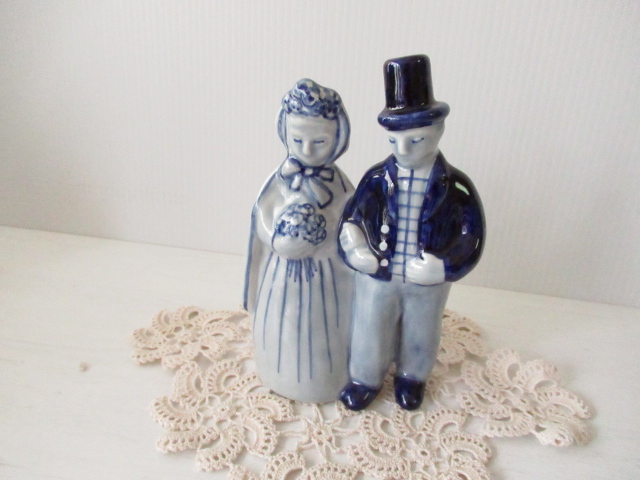 デンマークの小さな島(ボーホルム島)に1835年から1996年まで存在した陶器メーカーSoholm(スーホルム)の陶器のオブジェです。クラシックな衣装に身を包んだ新郎新婦がデザインされています。ブルーの濃淡だけで表現された上品な雰囲気です。