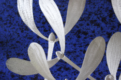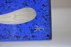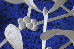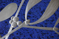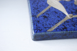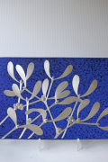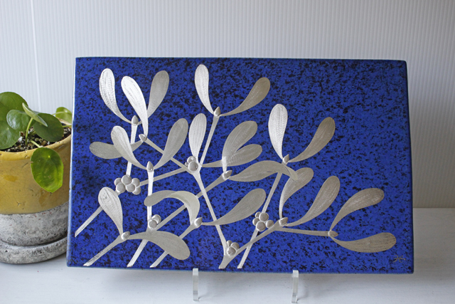 スウェーデン、GUSTAVSBERG(グスタフスベリ)の陶板です。こちらは鮮やかなコバルトブルーの地に宿木(ヤドリギ)が銀彩でデザインされています。同社にデザイナーとして招かれたドイツ人Heinz Erretのデザインで1970年代から80年代にかけて、スウェーデン各地のフラワーモチーフをデザインした作品です。高級感もあり、美しくお部屋がエレガントに飾られお勧めです。ヤドリギは永遠を象徴する神聖な樹とされています。昔からヨーロッパでは、クリスマスツリーにヤドリギの枝が飾る習慣がありました。