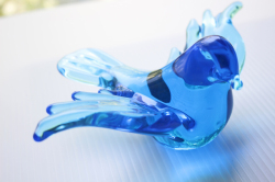 スウェーデン製のガラスのオブジェです。可愛らしい小鳥がモチーフになっています。つるんとした表面の滑らかさと、セルリアンブルーの美しいお色、羽を広げたとても愛らしく仕上がっています。