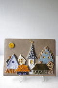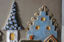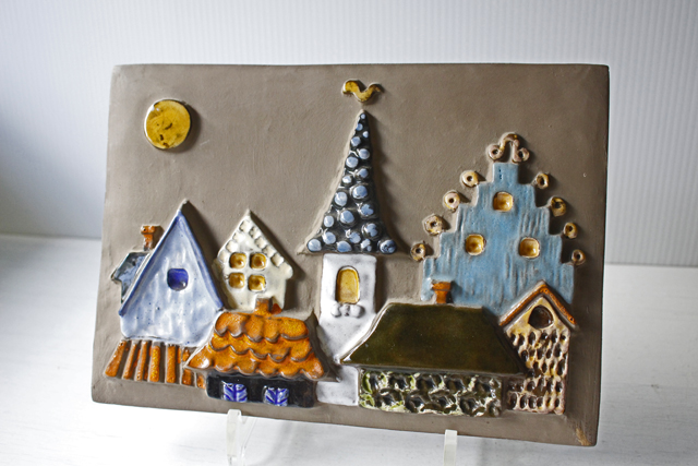 スウェーデンのjie gantofta社製の陶器の壁掛けです。可愛らしいお家の屋根がモチーフになっています。屋根や壁以外は、釉薬がかけられておらず素朴な雰囲気を感じることができます。