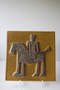 スウェーデン、GUSTAVSBERG(グスタフスベリ)の陶板です。こちらは、スウェーデンを代表する陶芸家、バリヤ・スクーギの作品で古代壁画のようなシンプルでスタイリッシュなデザインで馬に乗った人が表現されています。グスタフスベリに40年間在籍した彼の作品はスウェーデン国立美術館に展示されています。