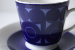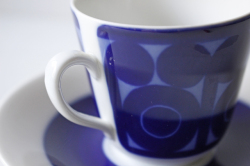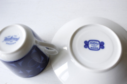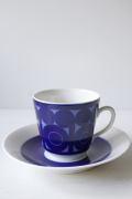 ロールストランド社、Agda/アグダシリーズのカップ&ソーサーです。デザインはAmandaなどを手がけたChristina Cambellです。ブルーの濃淡でお花を抽象化したような丸い模様が印象的です。Agadaオリジナルのバックスタンプも凝っているポイントです。ロールストランドが得意としたブルーの発色の美しさが味わえるおすすめの作品です。