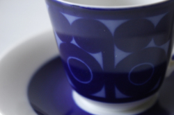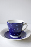 ロールストランド社、Agda/アグダシリーズのカップ&ソーサーです。デザインはAmandaなどを手がけたChristina Cambellです。ブルーの濃淡でお花を抽象化したような丸い模様が印象的です。Agadaオリジナルのバックスタンプも凝っているポイントです。ロールストランドが得意としたブルーの発色の美しさが味わえるおすすめの作品です。