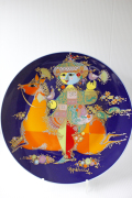 ドイツの一流ブランド、ローゼンタールのスタジオラインにて製造されたデンマークの人気デザイナーBjorn Wiinblad(ヴョルン・ウィンブラッド)の美しい絵皿です。千夜一夜物語のアラビアンナイトのお話のモチーフがデザインされており、エキゾチックな衣装を着た人が馬に乗っている場面が描かれています。大きいサイズで壁掛けにしたり、お皿立てで飾ったりお部屋の状況に応じて飾ってください。