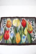 スウェーデン製のフレミッシュ織の壁掛けです。フレミッシュ織は、スウェーデンの中世より伝わるつづれ織りで、椅子の座面やバッグなどに使われてきました。ウールの糸で手間と時間をかけて丁寧に織られた手仕事は、お部屋の温かく彩ってくれるでしょう。温かな暖色系のチューリップがモチーフとなっています。上部角に丸フックがつけられていますので、そこにピンを刺したりフックに掛けたりして飾ることができます。