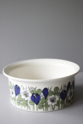 フィンランド、ARABIA/Esteri Tomula/エステリ・トムラのデザインした、クロッカスシリーズの丸ボウルです。エステリ・トムラは、1947年~1984年まで長きにわたりアラビアで活躍した装飾デザイナーです。北欧の春を待ちわびるクロッカスが見事な線描で表現されています。モノトーンとカラーシリーズがあり、こちらはカラーシリーズで春の爽やかな配色が魅力です。製造期間が2年と短かったため、市場でも見つけるのが困難なお品です。お探しの方は、お見逃しなく。耐熱なのでオーブン使用可能です。