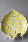 スウェーデン、スティグ・リンドベリデザインのリーフ型ボウルです。ファイアンス焼きとは、赤土を利用した器にマットな仕上がりの白い釉薬をつけ、ここにリンドベリデザインによるカラフルなモチーフ達が一つ一つ手描きされたスタジオ作品です。量販品を生産するラインとは別にGスタジオ(G-Studion)と呼ばれるスティグ・リンドベリやリサ・ラーソンなど著名なデザイナーがアート作品を制作した部門があり、40名ほどの絵付師が絵付けを担当しました。品質管理のために裏にあるスタジオハンドのマークの横に各自アイコンをつけています。こちらの絵付師さんのアイコンはマスにエックスです。ファイアンス焼きは、一般的な陶器よりも脆いので、きれいに残っているものが少ないです。スウェーデン国内でもコレクターがたくさんいます。