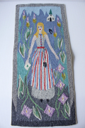 スウェーデン製のフレミッシュ織の壁掛けです。フレミッシュ織は、スウェーデンの中世より伝わるつづれ織りで、椅子の座面やバッグなどに使われてきました。ウールの糸で手間と時間をかけて丁寧に織られた手仕事は、お部屋の温かく彩ってくれるでしょう。ストライプのカラフルなファッションの女の子がお花畑に佇んでいます。