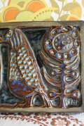 SOHOLM(スーホルム)社の鳥の陶板です。両脇にはお花、真ん中には鳥が仲睦まじく向かい合っています。大きなサイズで迫力があります。こちらは市場でもあまり見かけない珍しい陶板です。