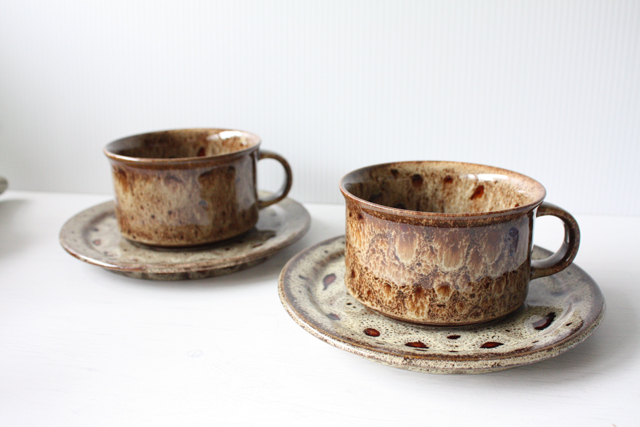 スウェーデン、HOGANAS KERAMIK、MAMBOシリーズのカップ&ソーサーです。こちらは艶々のマーブルカラーのパターンで、大変珍しいシリーズになります。大きさも程よく、コーヒー、紅茶問わずたっぷりと頂ける使い勝手のよいサイズになります。コンディションもよく、オススメですよ。ホガナスのヴィンテージは現地でも人気があります。強くて実用的、そしてデザインが洗練されているホガナスは現在はイッタラ社の傘下に入り、素敵な作品を作り続けています。