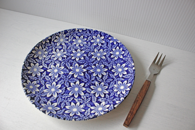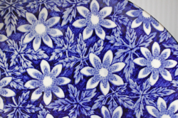 ノルウェー、EGERSUND(イーエスンド)社のデザートプレートです。こちらは濃紺の鮮やかなブルーカラーでフラワーモチーフが繊細に描かれています。モチーフが細やかにデザインされており、またプレート全体にびっしりと描かれていますので、大変美しく仕上がっています。北欧のブルーカラーが食事の時間を彩ってくれそうな素敵なプレートです。