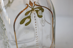 デンマークの王室御用達ブランド、Holmegaardのクリスマスボトルです。こちらは1981年から毎年発売されている人気のシリーズで、毎年違ったクリスマスの心温まる場面がデザインされています。デザイナーは、Michael Bang がフォルムを、 Jette Frolichがデコレートを担当しています。側面には1~24までの数字が目盛として描かれ、12月1日から毎日一目盛ずつお酒を飲んでクリスマスを待つという子供たちのJULカレンダーの大人バージョンのようなものでしょうか。毎年コレクションしたくなるお品ですね。