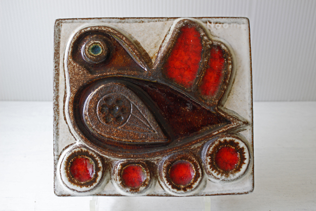 デンマーク、SOHOLM(スーホルム)社の陶板の壁掛けです。可愛らしい小鳥と赤い木の実がデザインされています。デンマークでもコレクターのいるNoomiデザインです。飾りやすい大きさで、玄関やキッチンなどちょっとした空間を素敵に演出してくれそうです。