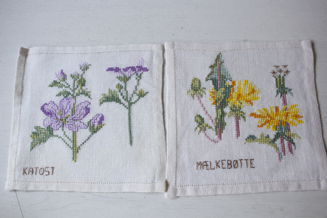 北欧ヴィンテージ/ハンドメイド/手刺繍/フラワーモチーフ/2枚セット/No.1