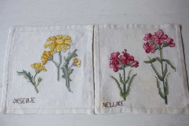 北欧ヴィンテージ/ハンドメイド/手刺繍/フラワーモチーフ/2枚セット/No.3