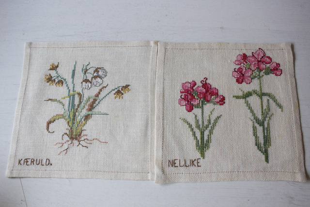 北欧ヴィンテージ/ハンドメイド/手刺繍/フラワーモチーフ/2枚セット/No.5